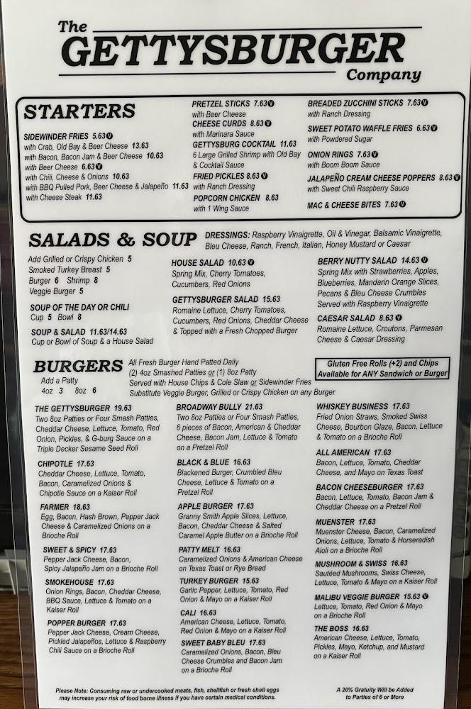 The Gettysburger Company offers a diverse menu filled with American comfort food classics. Signature items include a range of burgers, hand-breaded chicken, and delectable sandwiches. The kids’ menu ensures young diners have tasty options too. The star of the show is undoubtedly the burgers, with choices like the famous Gettysburger and flavorful variations such as Smokehouse and Chipotle.